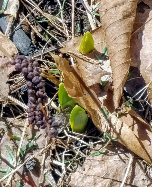 For us, it’s crocuses. We have a bunch of them sprout up and bloom and add some cheery to the ever-lasting winter.